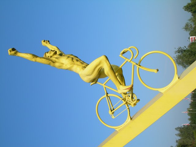 Sur son vélo de couleur or,